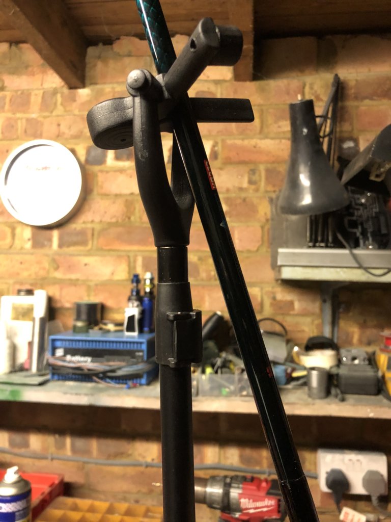 I’m struggling to see the whole gravity point here if I’m honest. You see how it works don’t you Jason? The rod rest pivots very freely so the leaning rod finds its home in the V.
