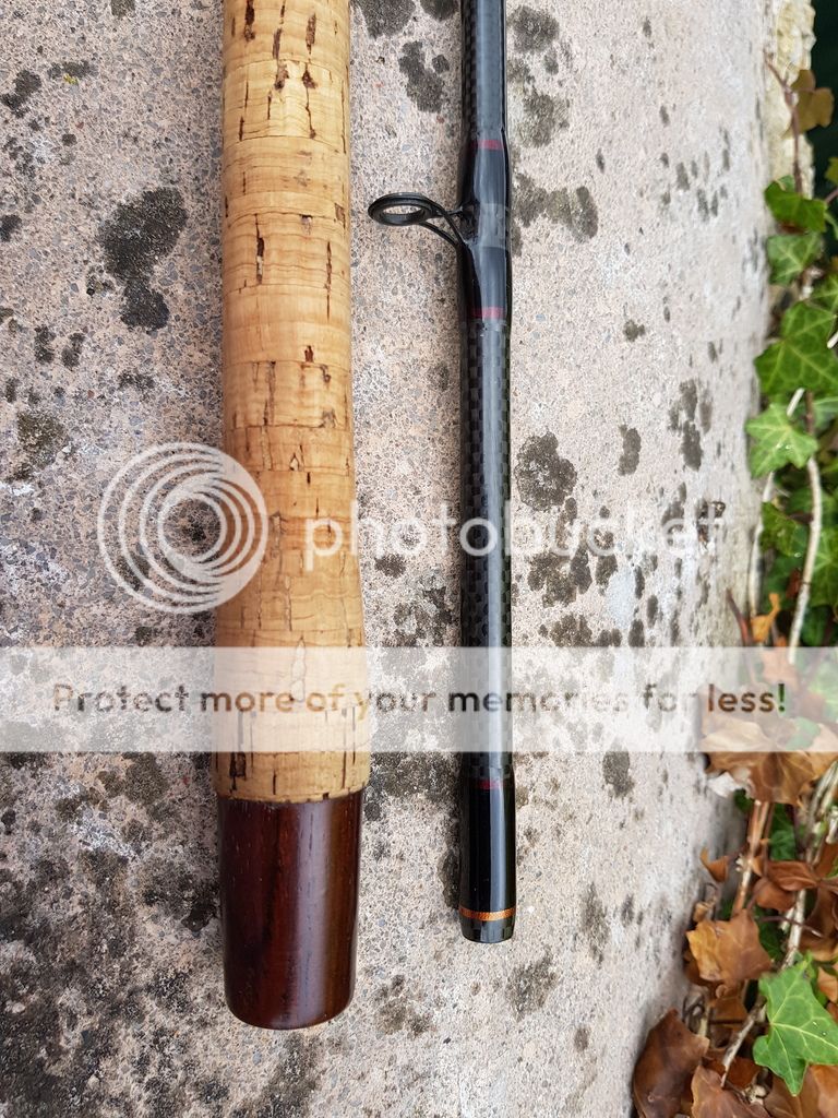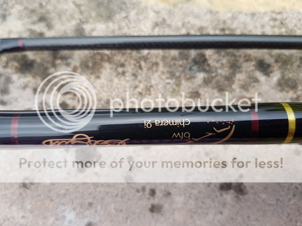 BFW Chimera 2i by Bob Gill 12' 1.75tc custom built to a very high standard. Hardwood inserts including butt cap and foregrip inserts isotope in top of handle. Harrison black/grey chequered blank with gold and burgundy whippings topped by Bob's glow in the dark isoblob tip which also reduces tangles on the tips and white and orange tip. As you can see from the photos in very good condition. Come's with high quality protective Harrison bag.