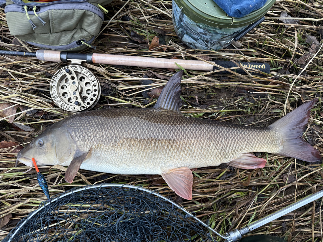 Several trots later and I was surprised to hook a barbel as I really wasn't expecting them to be lively enough to take a trotted bait after the frosty nights of late.