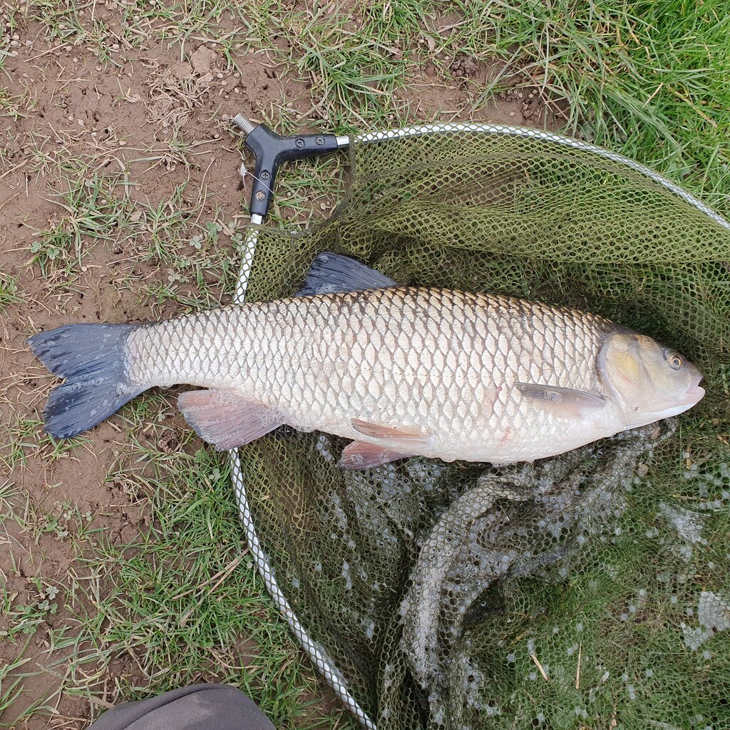 After losing a good chub in a snag on my first cast, I moved downstream and cast near a fallen tree. A few minutes later, I hooked into an angry chub. This time, I pulled hard to keep it from snagging, and when I saw it in the net, I knew it was a good fish. After weighing it at 6.17 pounds, I was thrilled. It's not my PB, but it’s the biggest chub I've caught from that tributary.