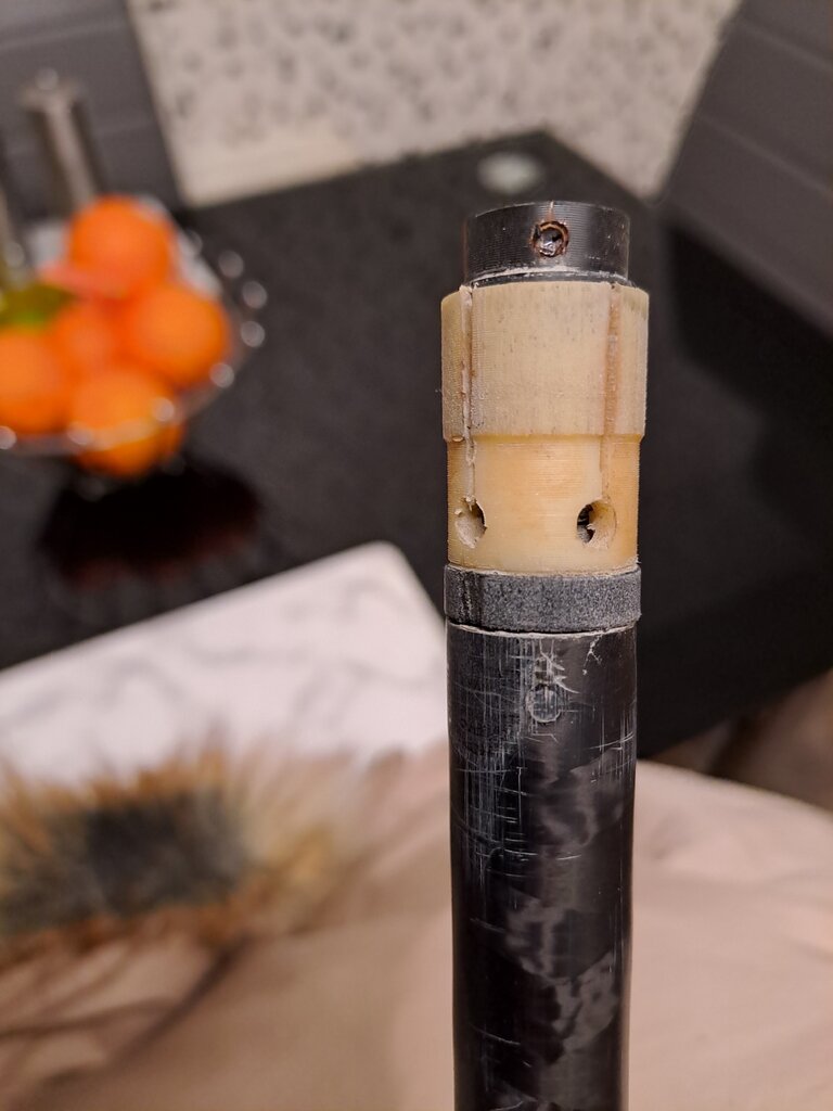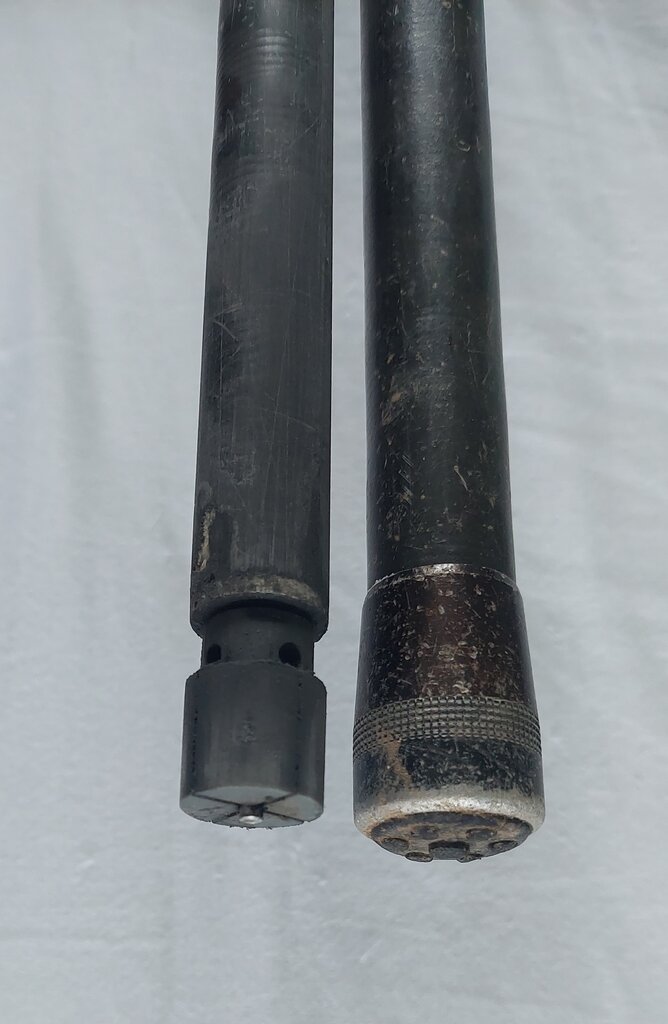 I'll take a pic, the top one (which I remembered as being black but I must have remembered the very end as being black) is obviously the locking collet which is locked in place by the cap with the rivet (rusty pin) at the the top and I can't see any way to remove it without punching or drilling it out and making the rest up as I go along.
