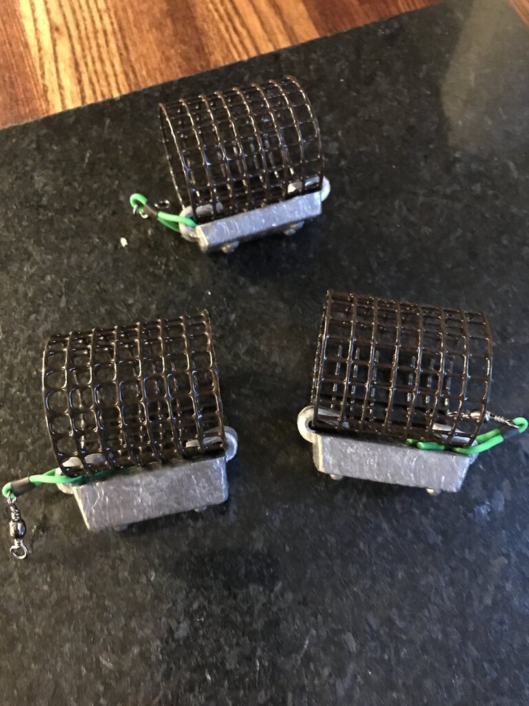 The coating is always slightly thicker in some areas than others and the leads can vary by 5 or so grams and not always come out looking the same as they are manually poured to a fill line and left to set around the cage but they come out plenty good enough for us barbel chuckers. The carp guys would probably turn their noses up at them 😂.
