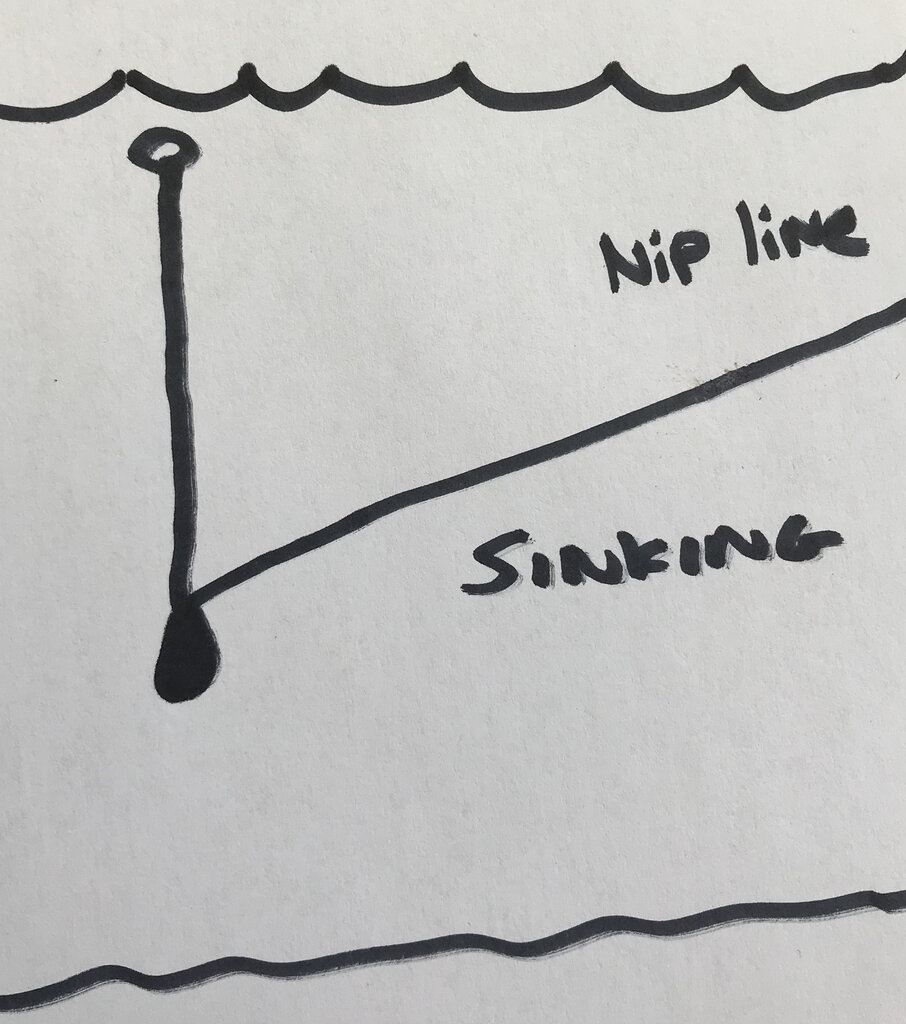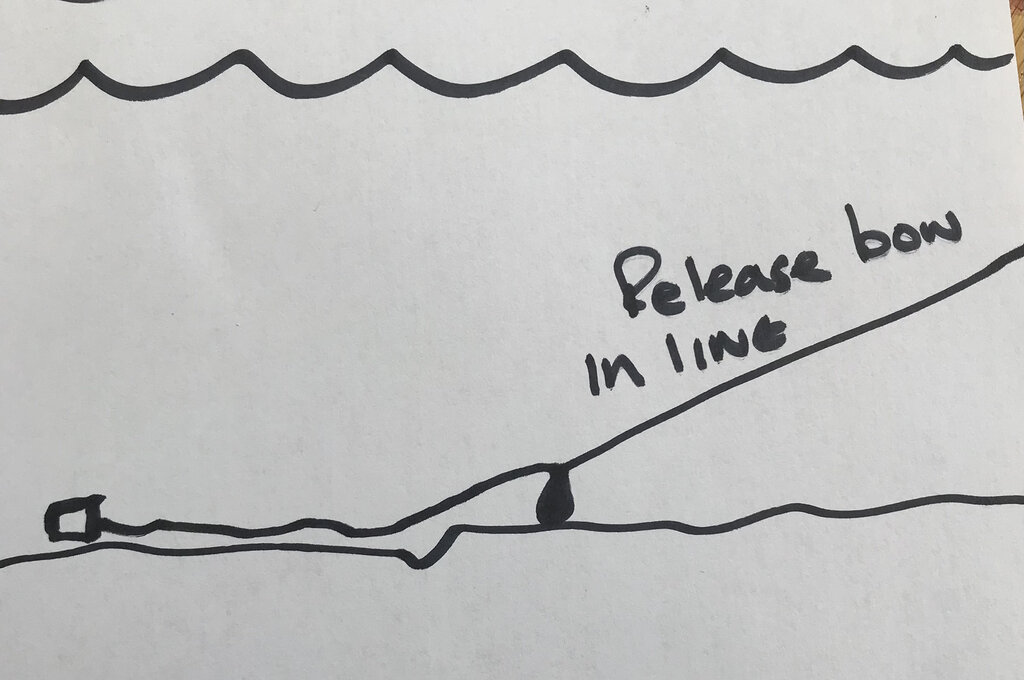 When the lead hits the deck the bait will sink slower and the current will move it before it also hits the deck. The key is the bait infront of the lead on water impact, the lot then sinks vertically and when the lead impacts the bed the bait will go down slower and in an arc unless your fishing a ridiculously slow river with practically no flow at all
