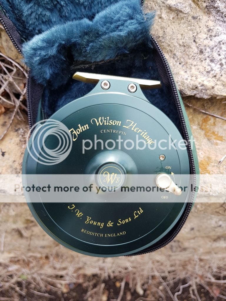 J W Young and son John Wilson Heritage centrepin reel 4½"x¾" Y2000 in very good condition with only a slight bend in the line guard (which dosent effect the reel at all) spins like a dream no wobble. Comes with protective pouch box guarantee and pamphlet including the original receipt for £266.