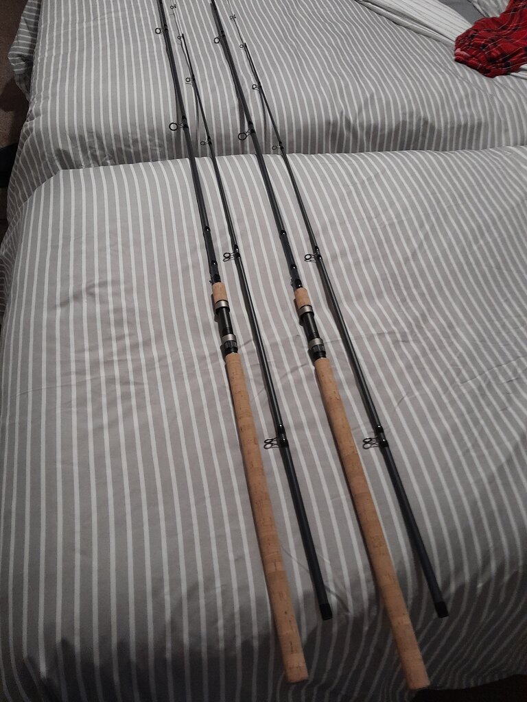 Half decent rods, white tips, double leg guides, screw up reel seats, original bags, virtually as new...