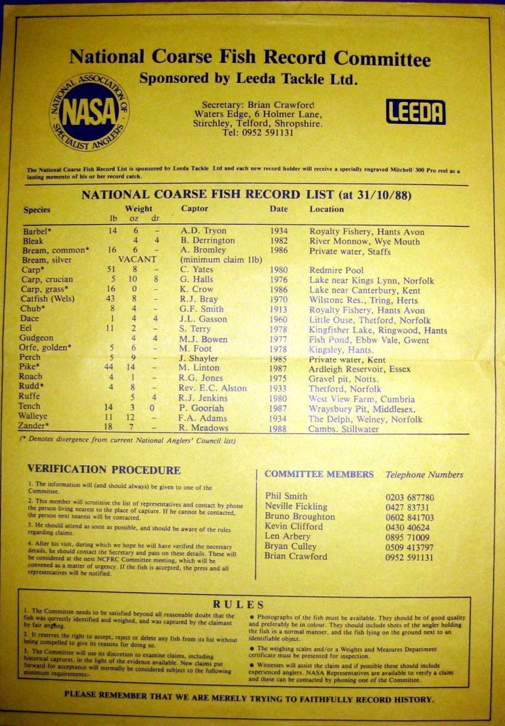 Terry that was the 'NASA' 'Record list', in the 80's the Official British Record Fish Committee (BRFC) Barbel record was Joe Day's 13 lbs 12 oz 1960's Royalty caught specimen. For some further perspective, in the mid to late 80's the official British Chub record was Bill Warrens 1950's 7 lbs 6 oz Royalty caught specimen. Regarding Barbel on the Avon and Stour in the 70's and 80's, we fished for 8's, hoped for 10's and dreamed of catching a 12 pounder.Whilst looking for info on old AT specimen size 'zones' I came across this.