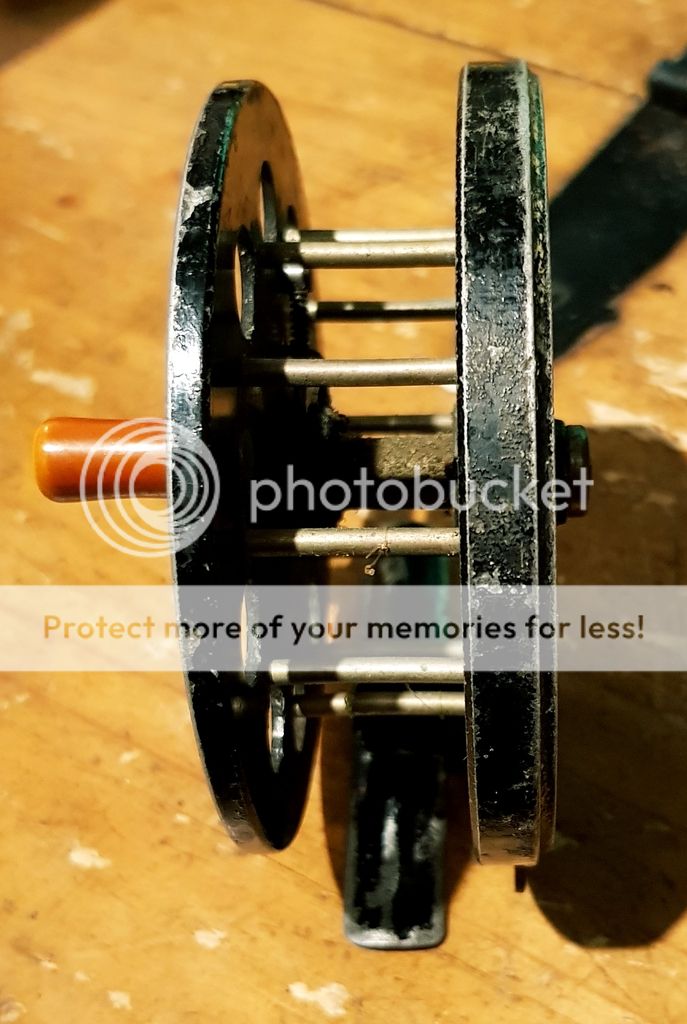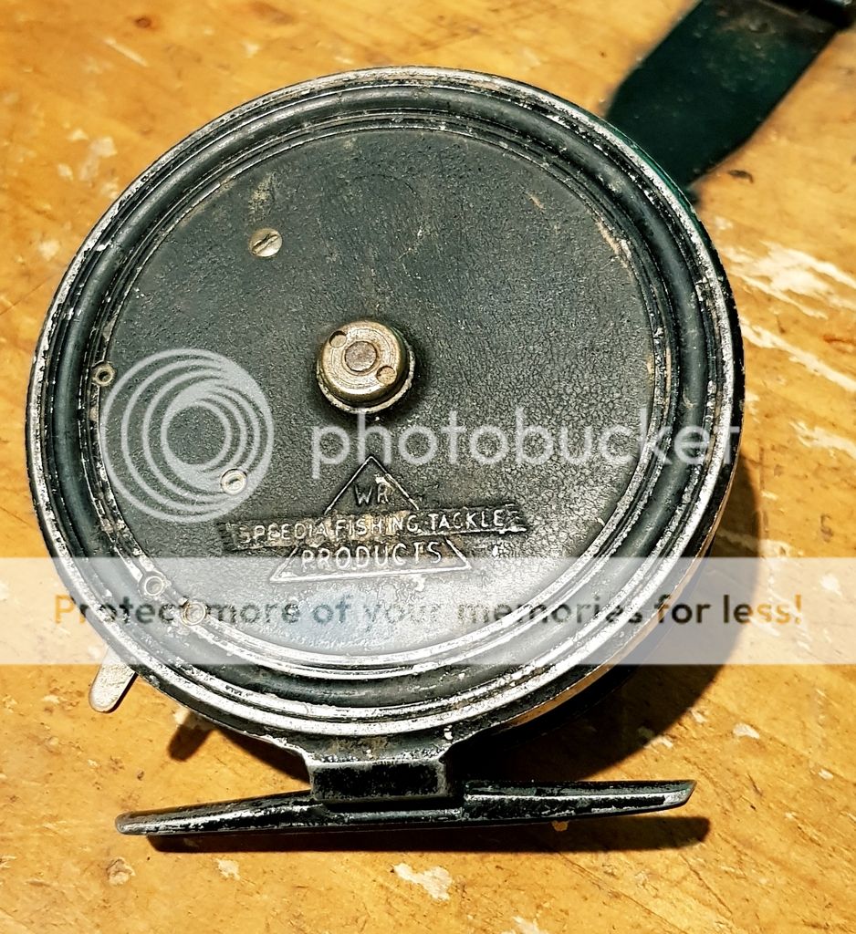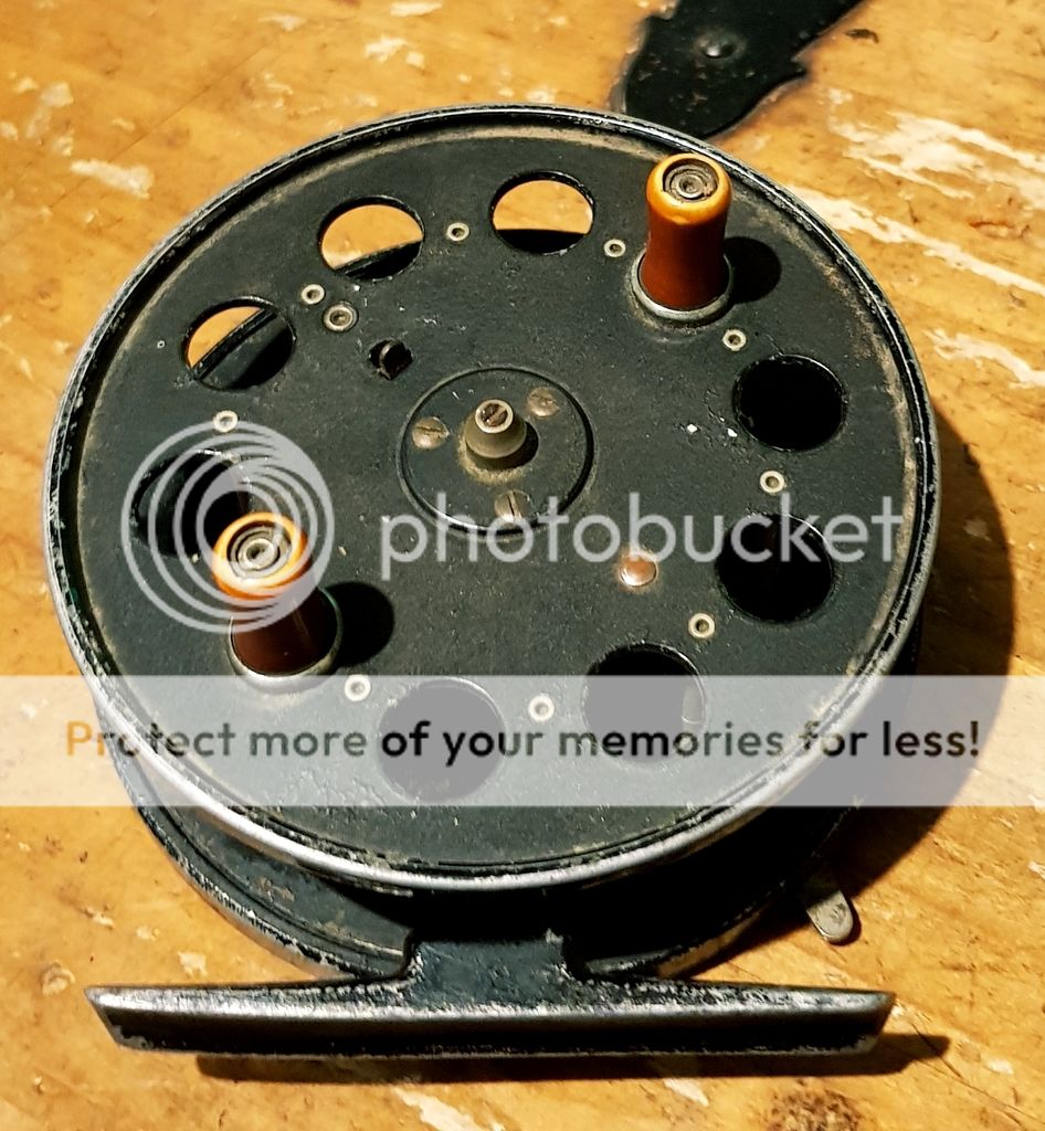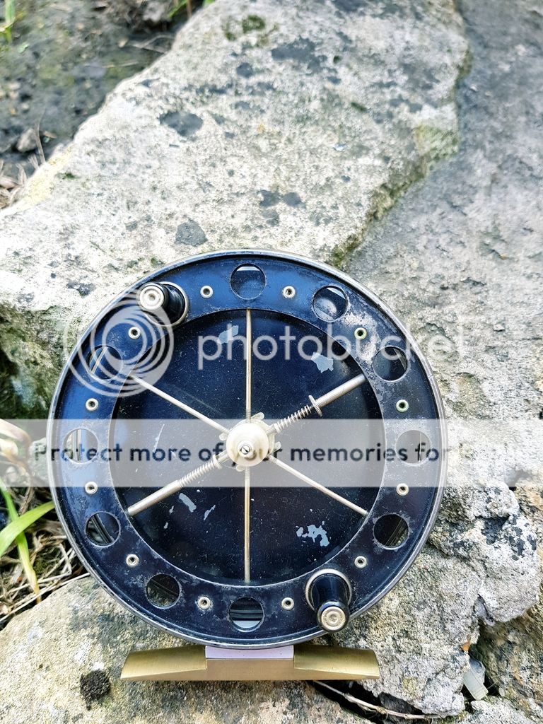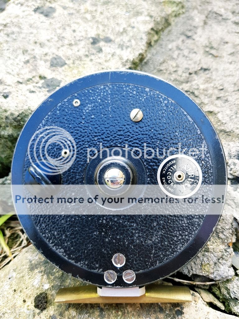 Allcocks match aerial 4½"x¾" centrepin in fantastic condition has a re-engineered brass reel foot which looks fantastic and is a very good job. Reel spins lovely without wobble or play and the ratchet is crisp and works well. Slight paint loss but spins fantastic, a very usable pin that looks the business.