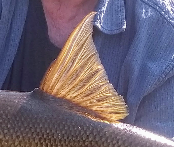 I am sure we have all seen the occasional barbel with damage in this area. As they rummage along looking for your bait the line goes over their head and spooks the fish. Its dorsal fin pops up and the fish runs - trapping the line.......SNIP!
